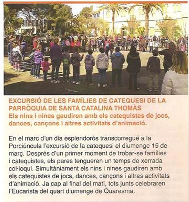 EXCURSIÓ DE LES FAMÍLIES DE NINS/NINES DE CATEQUESI